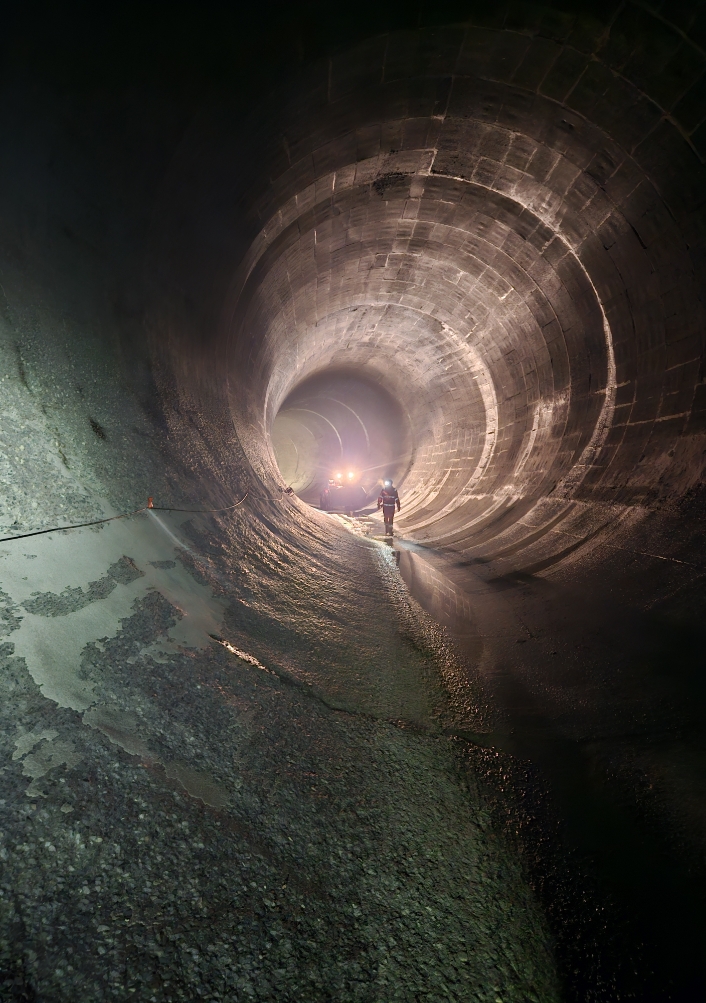 C’est escortés de Patrick Aeschlimann, employé des SiL chargé de superviser ce chantier titanesque, que nous nous enfonçons dans les entrailles de la montagne. «Ces travaux de maintenance se déroulent à cette période, car le débit du fleuve est moindre, on y perd donc moins en termes de production. Nous sommes aussi hors-période de fraie des poissons, c’est donc plus écologique», détaille l’ingénieur, et de préciser: «En plein été ou en plein hiver, cela reviendrait trop cher.»