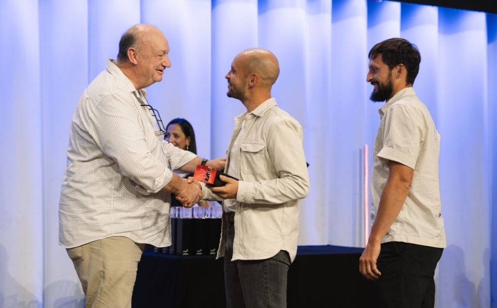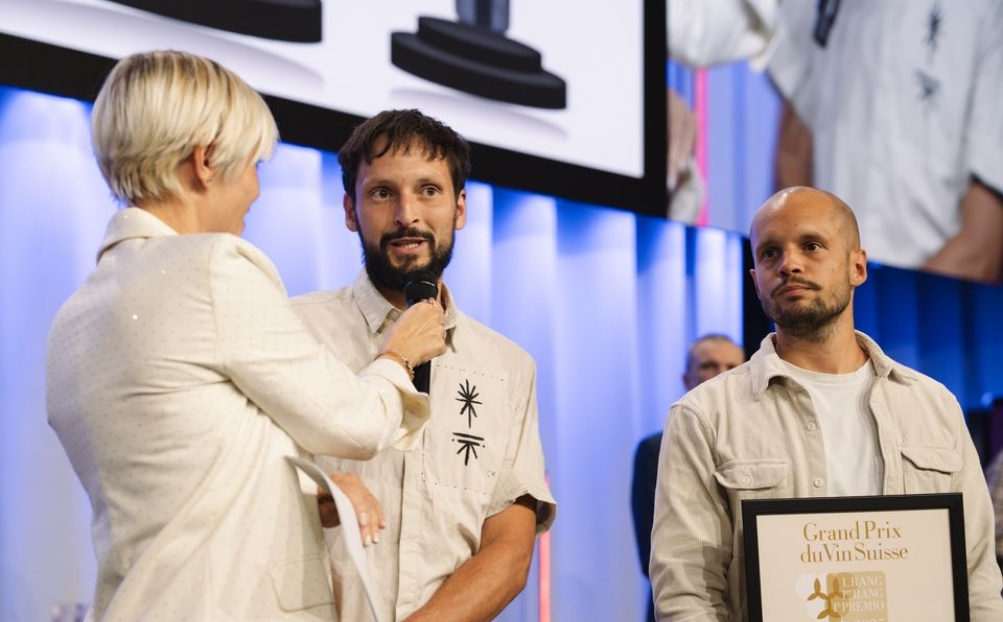 Florian (à g.) et Gilles Favre ont partagé la joie de leurs deux distinctions en direct avec leurs compagnes le 15 octobre dernier à Berne, lors du palmarès du Grand Prix du Vin Suisse. | B. Rüttimann