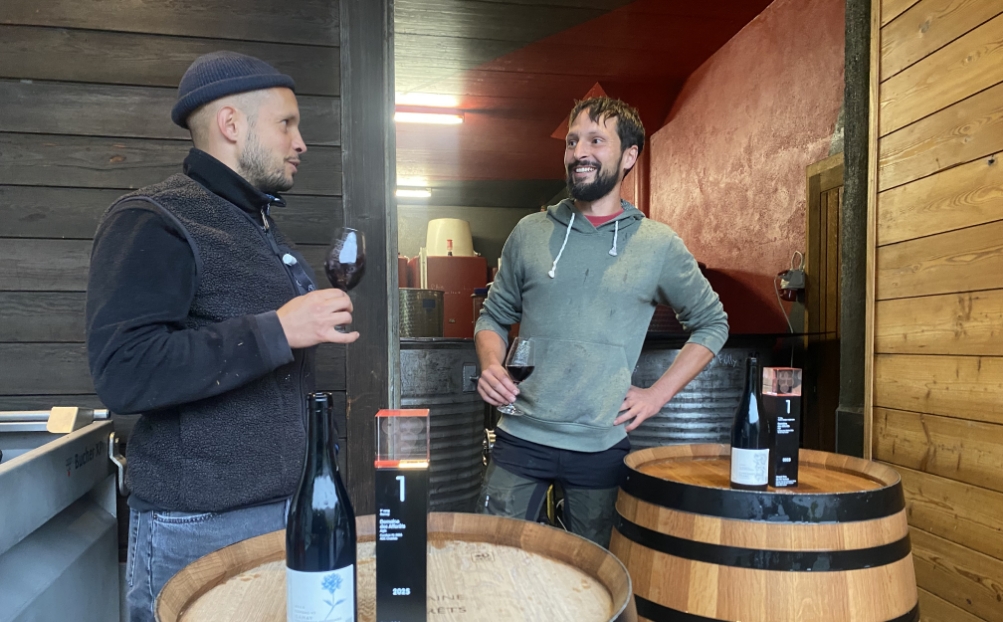 Les deux derniers trophées en date trônent au premier plan. Gilles et Florian, les deux fistons, 36 et 33 ans, sont revenus de Berne le 15 octobre avec quatre médailles du Grand Prix du Vin Suisse, dont deux d’or: une pour le meilleur Gamay (un Combaz-Vy de 2023), l’autre pour le «meilleur vin rouge monocépage issu d’une autre variété» (Le Baron des Afforêts, Cabernet Franc, 2023).