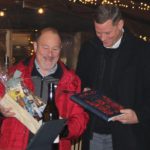 Oliver Fischer, président «Goût Zurich 2026», exhibe le cadeau reçu des autorités aiglonnes. | C. Jenny