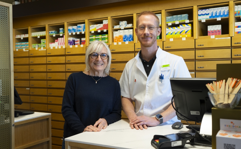 Après 28 ans derrière son comptoir, Jacqueline Badoud a remis son officine, la pharmacie du Marché à Vevey, à son cousin l’été passé. Léo Wildhaber représente la quatrième génération de pharmaciens de sa famille. | N. Desarzens