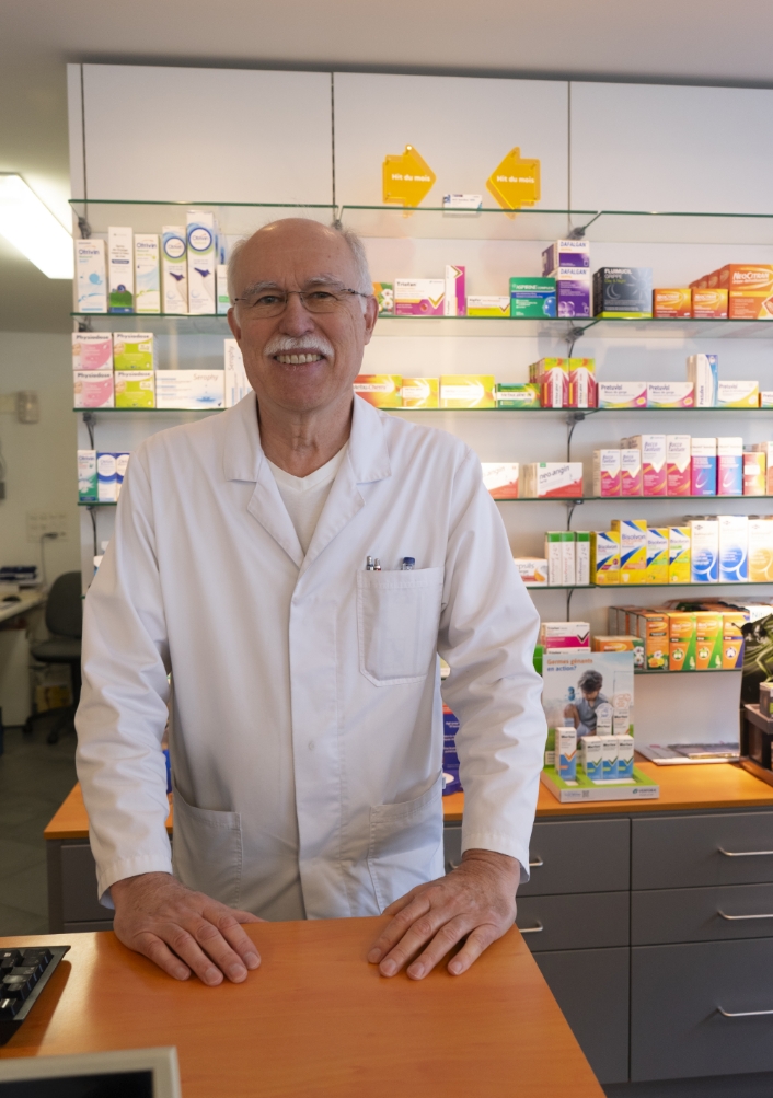 Cela fait 38 ans que ce pharmacien est derrière son comptoir, et il aime rappeler l’autonomie de son officine. «Le marketing ne dicte pas le réassortiment de mes rayons. Je suis donc libre de choisir les médicaments, donc mes clients aussi. Et le temps qui leur est dévolu n’est pas minuté!»