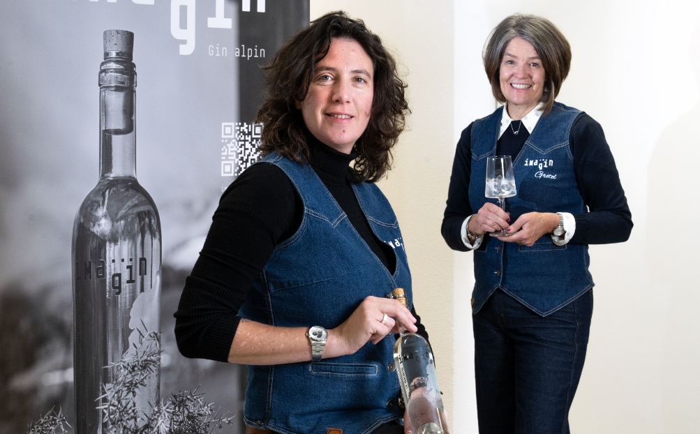 Pour la recette de leur gin alpin, les deux conceptrices ont fait appel au chef Pierre Crepaud (ancien chef du Mont-Blanc à Crans-Montana, 17/20 au Gault&Millau, une étoile au guide Michelin). Les bourgeons de sapin et le genévrier s’allient à la reine des prés, avec une touche de poivre de Sichuan produit par Sylvain Känel à Chavornay.