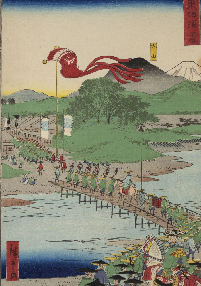Prenons le cas des estampes de paysages. Puisque se déplacer librement n’est pas entreprise aisée, le développement des gravures de voyage prend son essor particulièrement durant l’époque d’Edo. «Ces images étaient spécialement destinées à la population n’ayant pas l’autorisation d’emprunter certaines routes, complète Margaux Honegger. Cela permet ainsi au public de voyager par les images.»